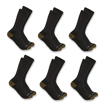 Carhartt Men's Midweight Synthetic Blend Crew Sock 6 Pack Pair, Black, Large (Pack of 6)