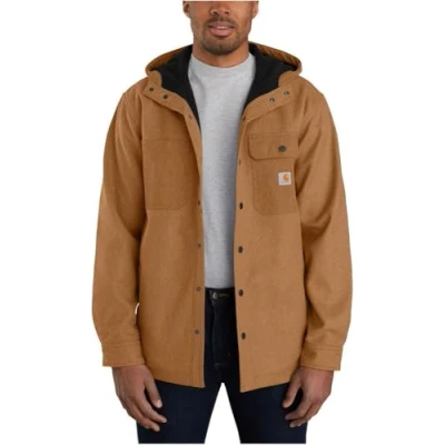 Carhartt Men's Rain Defender Relaxed Fit Heavyweight Hooded Shirt Jacket, Oiled Walnut Heather, S