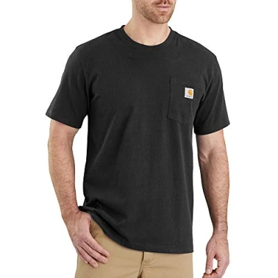 Carhartt Men's Relaxed Fit Heavyweight Short Sleeve K87 Pocket T Shirt, Black, S