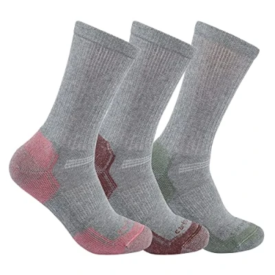 Carhartt Women's Midweight Cotton Blend Sock 3 Pack, Grey Assorted, L