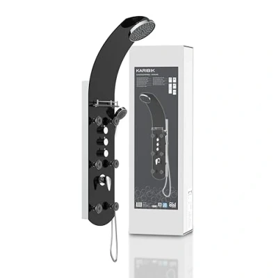 Caribbean Eisl Shower Panel, Wellness Including 6 Massage Jets, Coloured Safety Glass, Black, ORSP YMSBB