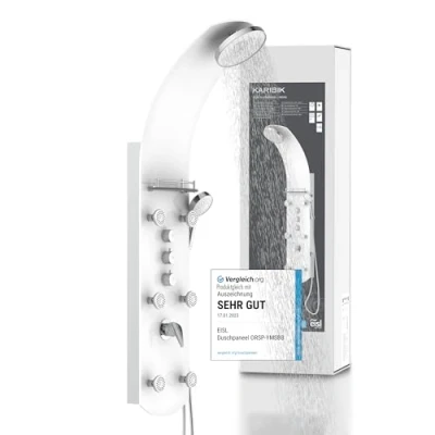 Eisl Ymsbw Shower Panel the Caribbean White Safety glass with chrome-plated Single Lever Mixer – Materials: Glass, Plastic and brass Colour: White – anti-limescale nozzles – Wellness Shower Head 20.5 cm diameter Shower Hose 150 cm – Material: stainless steel double wrapped design Shower Paneel height 140 cm – Shower Panel Width 29.7 cm – Shower Panel depth: 35,5 cm, Weight: 29.76240537 pounds, Manufacturer: Eisl Sanitär GmbH