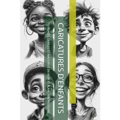 CARICATURES D’ENFANTS: 70 VISAGES SIMPLES ET AMUSANTS EN NOIR BLANC À REPRODUIRE