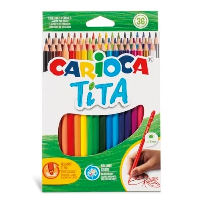 CARIOCA Jumbo Kids' Colour Markers Super Washable Ink Felt‑Tip Pens, Broad Blocked Tip, Maxi Octagonal Barrel, Gluten Free, Made in Italy (Box of 36 Markers)
