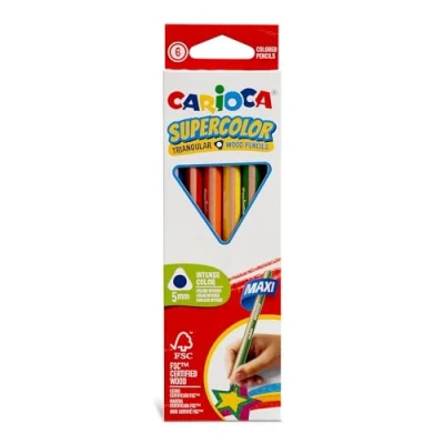 CARIOCA SUPERCOLOR Wooden Pencils Set of 6 pencils 100% FSC certified wood Maximum triangular body Intense colours and high coverage