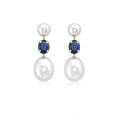 Carissima Gold 9ct Yellow Sapphire and Double Pearl Stem Drop Earrings