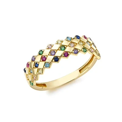 Carissima Gold Women's 9ct Yellow Multi Colour CZ 5mm Rhombus Pattern Ring #N