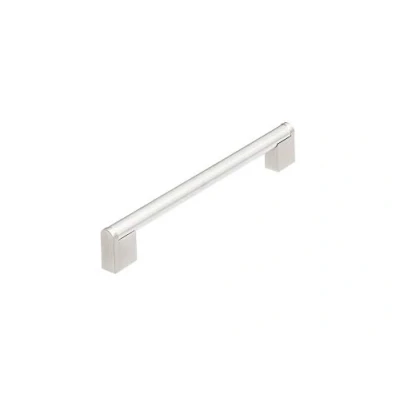 A substantial round bar sitting on square end plinths which have rounded tops to blend with the contours of the handle Includes cupboard handle & fixings The design benefits from the contrast in the split finish, nicely offsetting the components Available in different sizes Satin Nickel finish, Manufacturer: Carlisle Brass