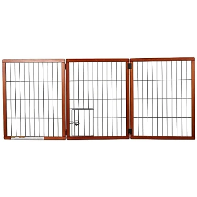 EXTRA WIDE: Configurable to fit wide spaces between 22 and 62 inches wide. Stands 28 inches tall PREMIUM WOOD: Designed with New Zealand pine wood. DURABLE AND CONVENIENT: The wood and steel design is durable and stylish SAFETY: Non-toxic finishes safe for pets International products have separate terms, are sold from abroad and may differ from local products, including fit, age ratings, and language of product, labeling or instructions.