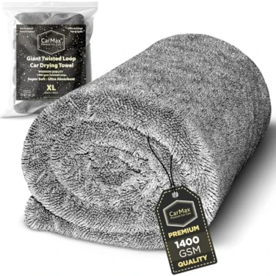 The CarMax Twisted Loop Drying Towel is the only car-drying towel you will ever need. Made from double-sided twisted loop fabric microfibre it gives a luxurious 1400gsm and the ultimate in drying capacity. A New and Exciting Experience - These car drying towels just feel different, they have a natural weight that makes them follow the contours of every panel making drying easier than ever Rapid, one pass drying - Just one pass is all you need with our Twisted Loop Technology, making it the fastest way to dry your vehicle, super absorbent, with a streak-free finish Unrivaled Professional Capacity -No other drying towel matches the superior water absorption of our twisted loop towel, providing unparalleled drying capability even for the largest vehicles. High Quality & Durable- Our Twisted Loop Car Drying Towels both XL and XXL are made to last, manufactured from the very best quality microfibre cloth and checked to a rigorous quality standard