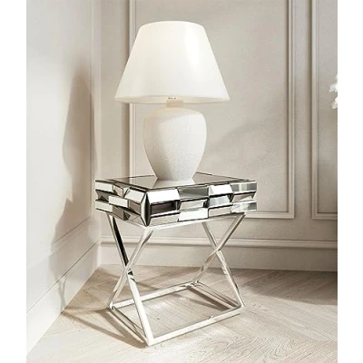 Contemporary two-tone side table in grey and silver 3D glass mirror effect Display your favourite accessories in either your living room, bedroom or your hallway to create a seamless look Complement the look with the matching mirror and console set Concealed pull-out drawer for additional storage Product dimensions: 60 x 40 x 54.5 cm