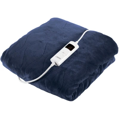 Carmen Comfort C81148BLU Fleece Luxury Electric Heated Flow and Over Blanket with 9 Heat Settings, Adjustable Timer 230gsm Flannel Material,160 x 130cm, Navy Blue