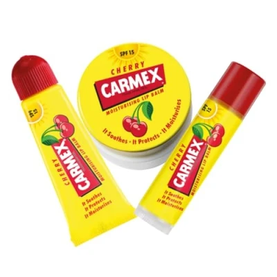 INTENSE HYDRATION WITH NOURISHING INGREDIENTS: Enriched with beeswax, cocoa butter, and camphor, this balm delivers deep moisture while offering antibacterial protection. Perfect for soothing and repairing dry, cracked lips caused by sun exposure, wind, or harsh weather. SPF 15 SUN PROTECTION: Infused with SPF 15, it shields lips from UVA and UVB rays, helping to prevent sunburn, flaking, and long-term sun damage. A must-have for summer holidays, festivals, and outdoor adventures. TRIPLE-FORMAT CONVENIENCE – STICK, POT & TUBE: Experience the cherry Carmex formula in three versatile formats for every lifestyle—a mess-free stick, an easy-squeeze tube, and the iconic balm pot. ON-THE-GO SUMMER ESSENTIAL: Whether in your pocket, handbag, or beach tote, this travel-friendly 3-pack ensures you're always ready to protect and hydrate your lips wherever summer takes you. TRUSTED CARMEX QUALITY SINCE 1937: With over 85 years of lip care expertise, Carmex remains a dermatologist-recommended brand, trusted for its effective, tingling formula that delivers visible results and lasting protection.