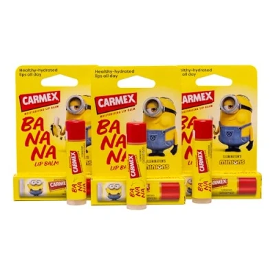 MINION-INSPIRED DESIGN THAT BRINGS JOY: Each balm stick comes dressed in lively Minion artwork, turning ordinary lip care into a playful experience. Fun, collectible, and full of character, it’s the perfect pick for Minion lovers of all ages who enjoy adding personality and cheer to their daily routine. BANANA-FLAVOURED BALM FOR ALL MINION FANS: Celebrate the Minions’ love for bananas with a unique banana-flavoured lip balm, paired with the timeless Carmex classic. Together, they create a flavourful lip care duo that blends playful fun with trusted tradition. PERFECTLY GIFTABLE, TOTALLY COLLECTIBLE: More than just lip care, this Minion duo is a fun keepsake for fans of all ages. With its playful Minion design and irresistible flavours, it makes the perfect gift, stocking stuffer, or collectible addition for anyone who loves mixing skincare with character. CLINICALLY PROVEN, EXPERTLY CRAFTED: Don’t just hope for results – see them! Our formula is clinically proven to deliver visibly softer, smoother lips in just 1 week. From the very first use, enjoy up to 24 hours of hydration that keeps your lips looking healthy and feeling soft. SPF 15 SUN PROTECTION – Shields your lips from harmful UVA and UVB rays with built-in SPF 15, helping prevent sun damage, dryness, and premature ageing while keeping them soft and healthy. QUALITY WITHOUT COMPROMISE: Cruelty-free and dermatologist-recommended, this balm is all about safe, reliable lip care. No fuss, no frills – just results you can count on every single time. Since 1937, Carmex has been the go-to name in lip care. Expertly crafted and perfected over decades, our formula is simple, effective, and trusted by millions of happy lips around the world.