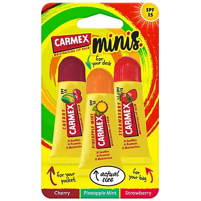 CARMEX Minis Lip Balm Tube Trio Pack, SPF15 (Cherry, Strawberry & Pineapple Mint) Soothes, relieves, and moisturises for soft, healthy looking lips