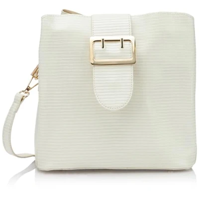 Feminine shoulder bag Embossed faux leather Large decorative buckle Gold details Magnetic closure
