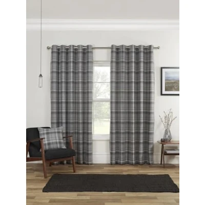 Carnoustie Blackout Eyelet Ring Top Curtains Grey 46x54' Sundour