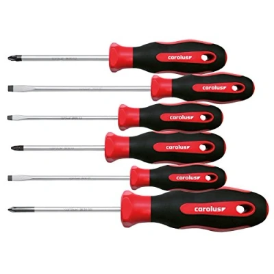 Blade made of alloy with a high-quality SVCM batteries are in high grade quality 2 component handle Slotted Blade: chrome-plated surface trimmed with black lace 75 mm long, 0,5x3; 100 mm long, 1x5,5 mm; 150 mm long, blade, 1.2 x 6.5 mm; Pozidriv: 0 – 100 mm Long, 1; 2 trimmed with black lace 75 mm long chrome finish 2 component handle Hard compost Nente made of polypropylene, non-slip soft material made from TPV contents: Slot Screwdriver, 3 5.5 6.5 mm Phillips Screwdriver, 0 PZ 1 second Carolus 3604.000 Screwdriver Set, 6 Pieces. Screwdriver Set, 6 piece set Tough and long-lasting Carolus made by Gedore Screwdriver/bits Screwdriver, Weight: 0.96 pounds, Manufacturer: CAROLUS