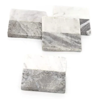Carousel Home and Gifts Set Of 4 Two Tone Natural Marble Coasters For Drinks Square