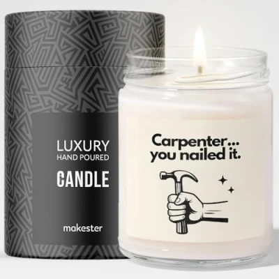 Carpenter Gift Luxury Soy Wax Candle Vanilla, Jasmine, Sugared Almond Makester