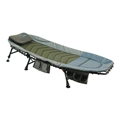 UNRIVALED COMFORT – Our Fishing Bed is built from a soft, padded foam! Arguably our fishing bed is the ultimate in comfort! With soft edges our chairs are perfect to lounge on with no discomfort from the strong steel frame underneath. Also comes with a detachable pillow incase you accidently doze off! BUILD QUALITY – Built upon an XL Steel Frame our fishing bed is ideal for everyone! The frame itself can easily hold 20 stone plus! This is no plastic gimmick chair, we are a leading UK company and we got to become that way by providing our customers with the very best solid, quality goods! Just read our reviews to find out why we’re everyone’s number one choice in fishing chairs/camping beds! PRACTICAL – Based on a 6 leg, fully adjustable design our beds can be put up almost anywhere! With flat bottom legs designed to rest on the surface they are especially suited to grass and muddy areas, no more sinking! Our bed also comes with built-in tool bags perfect for tackle storage! WARNING – Please bare in mind that our beds are so comfortable you may actually not want to get up and catch any fish! Make sure you take a partner so you have someone who can wake you back up! Use with caution and have a great time! J PRODCUT SIZE – XL / L-210cm x W-85cm x H-30/40cm