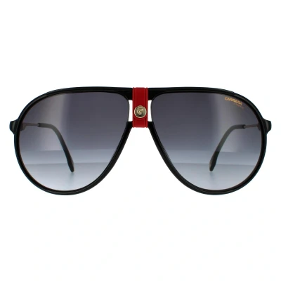 Carrera Aviator Mens Gold Red and Black Grey Gradient Sunglasses 1034S are a bold aviator style with a distinctive double nose bridge and luxurious leather detailing accented with the iconic C logo. The plastic rims are paired with slender metal temples that feature the signature Carrera logo, making them instantly recognisable.