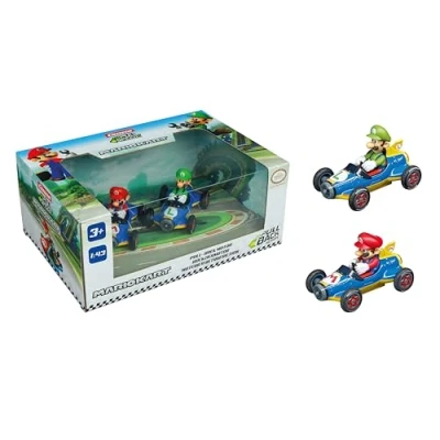Mario Kart Design – Immerse yourself in the exciting world of Mario Kart with these detailed vehicle models. The characters and designs from the world-famous video game come alive and offer fans and collectors alike joy Pull back drive – the powerful pull-back motor allows exciting races on any smooth surface. Simply pull back the car and when you let go, the racing fun starts. Perfect for little racers and fans of the Mario Kart franchise Robust and durable – the vehicle in scale 1-43 impresses not only with its detailed appearance, but also with its robust plastic chassis, which ensures durability and durability, even in the wildest races Endless driving fun – thanks to the pull-back function and the freewheel, the vehicle can roll far and fluidly, making the race even more exciting. Perfect for exciting duels or time races against the clock Stylish packaging – the vehicle is packed in an attractive blister card, which is perfect for giving as a gift or collecting. The Euro holes allow easy presentation and storage. Ideal for fans of the Mario Kart universe, Manufacturer: Carrera Toys GmbH