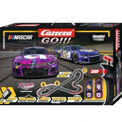 NASCAR FEELING HOME: The Carrera GO!!! "NASCAR 4.9" set offers fans aged 6 and up the opportunity to experience the thrilling NASCAR feeling in their own living room. The race track stretches over 4.9 metres and offers real NASCAR racing experience. CHALLENGING TRACK: The race track features long straights and challenging curves that are perfect for breathtaking high-speed duels. Drivers must demonstrate their skill and responsiveness to maintain control of their vehicles. IMPRESSIVE VEHICLES: On the starting line are two impressive vehicles from the renowned Hendrick Motorsports racing team. The NASCAR Camaro NextGen ZL1 "Hendrick Motorsports, Chase Elliott, No.9" and the NASCAR Camaro NextGen ZL1 "Hendrick Motorsports, Alex Bowman, No.48" are ready to dominate racing. ACTION RACING TRACK: The action racetrack is in a 1:43 scale and offers faithful vehicles on the same scale. The rail elements provide action-packed driving pleasure while drivers need to keep control of their cars. Turbo button: the hand controls are equipped with a turbo button that provides extra speed. This allows exciting overtaking manoeuvres and races full of adrenaline., Manufacturer: Carrera Revell Europe GmbH