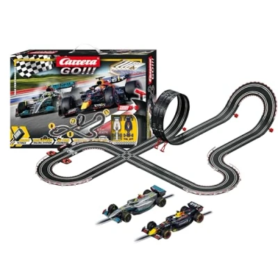 F1 World Championship Duel: Experience exciting Formula 1 duels between Max Verstappen & Lewis Hamilton with the Carrera GO! Max Performance Set, ideal for motorsport fans aged 6 and up Active racing: 6.3 m track length including 90° curve, looping and crossing ensure challenging races and ultimate driving fun – size 175 cm x 122 cm High-quality vehicles: set includes Red Bull Racing RB18 "Verstappen, No.1" and Mercedes-AMG F1 W13 E Performance "Hamilton, No.44" in scale 1:43 for realistic racing fun Extendible and interactive: expand your racetrack with additional tracks and elements, experience action-packed races thanks to the turbo button hand controller and use the lap counter for exciting competitions Perfect gift: The Carrera GO!!! Max Performance Set is the ideal gift for all Formula 1 and racing fans who want to recreate their favourite duels in the living room, Manufacturer: Carrera Toys GmbH