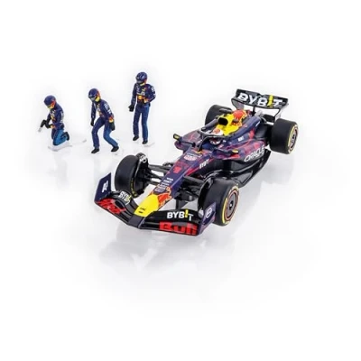 Faithful design: detailed replica of the Oracle Red Bull Racing RB20 in the special Silverstone 2024 finish. Digital driving fun: individually coded and digitally controllable for precise racing on Carrera DIGITAL 132 tracks. EXCLUSIVE PRESENTATION: Delivered in an attractive, finely printed tin with three Red Bull Racing mechanics in original dress. High-quality workmanship: robust, durable and perfect for exciting races in 1:32 scale. Complete set: includes 1 vehicle, 1 guide keel and 2 replacement grinders - ready to use., Manufacturer: Carrera Revell Europe GmbH