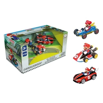 PULL BACK & DRIVE – Experience the thrill of high-speed racing with the powerful pull-back motor. Simply press, pull back and release the Mario vehicle to let Mario race across the track FAITHFUL ATTENTION TO DETAIL – This 3 pack contains detailed replicas of Mario in different vehicles, all in scale 1 -43. Perfect for collectors, racing fans and Mario enthusiasts ROBUST DESIGN – made with a durable plastic chassis, these vehicles are ready to ride round after round. They are not only built for racing, but also for durability to survive any wild ride VERSATILE PLAY OPTIONS – the combination of pull-back function and freewheel forward offers endless playing possibilities. Whether racing events, stunt challenges or simple free play, the fun never stops THE PERFECT GIFT SET – the Pull & SPEED Mario Kart – Mario 3 pack is a must for any Mario Kart fan. It combines the popularity of Mario with the excitement of racing and offers hours of entertainment value for all ages, Manufacturer: Carrera Toys GmbH