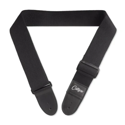 Strong and Comfortable: 2-inch-wide cotton guitar strap Universal: Suitable for use with any instrument with a standard strap button Adjustable: Adjusts from 34 inches to 60 inches in length Strong: Quality black leather ends Style: Carry-on logo stamped in white print