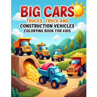 Cars, Trucks and Construction Vehicles Coloring Book for Kids: Fun Easy Vehicle Pages Kids Ages 3 8
