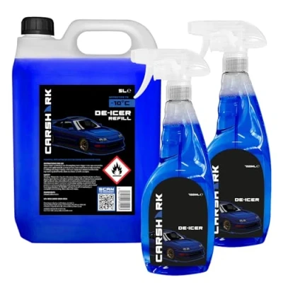 CARSHARK Fast Acting Deicer, 2 x 750ml + 5 Litre Refill, for Doors, Windows and Locks