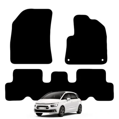TAILORED CUSTOM FIT: Carsio Carpet Car Mats For [Citroen C4 Picasso 2014 onwards 3 Piece Set with 2 Clips]: Expertly crafted to precisely match the exact dimensions and contours of your vehicle. These mats are designed for an exact fit, ensuring complete coverage and protection. SLEEK & DURABLE DESIGN: Our car floor mats are crafted from a new 550gsm automotive-grade carpet, boosting comfort on long drives and extending your vehicle's interior lifespan. With a multi-layered construction, modern carpet texture, and reinforced backing, they offer durability and a premium look. Easy to maintain?just remove, shake, and vacuum?they're perfect for those seeking stylish, high-quality mats that blend luxury with practical protection. CLIPS INCLUDED - SECURE FITMENT: Equipped with antislip backing and OEM-style clips, our floor mats ensure a secure fit in your car?s footwell. The textured backing acts as a built-in retention system for a non-slip surface, while the easy-to-install clips provide extra security to prevent movement. Ideal for a stable, safe driving experience, these mats combine durability with advanced technology for a reliable and stylish solution. BLACK TRIM: Each floor mat is meticulously edged with Black Cloth Edge/Binding, creating a sleek and professional finish that enhances the look of your vehicle. This along with the high-quality Black Carpet clean aesthetic that complements your car?s interior beautifully. MADE IN THE UK: Expertly produced by Carsio in the UK, our Mats are hand-finished and rigorously inspected by our skilled team to ensure top quality and lasting protection. Designed to meet OE-level standards, they provide exceptional value at a fraction of the dealer price. With state-of-the-art manufacturing technology, Carsio minimizes waste and reduces environmental impact, offering you superior quality and great value.