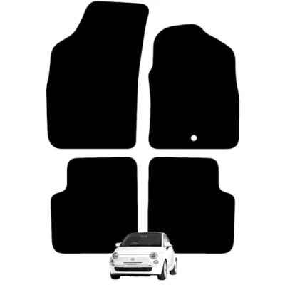 TAILORED CUSTOM FIT: Carsio Carpet Car Mats For [Fiat 500 2008 to 2012 4 Piece Set]: Expertly crafted to precisely match the exact dimensions and contours of your vehicle. These mats are designed for an exact fit, ensuring complete coverage and protection. SLEEK & DURABLE DESIGN: Our car floor mats are crafted from a new 550gsm automotive-grade carpet, boosting comfort on long drives and extending your vehicle's interior lifespan. With a multi-layered construction, modern carpet texture, and reinforced backing, they offer durability and a premium look. Easy to maintain?just remove, shake, and vacuum?they're perfect for those seeking stylish, high-quality mats that blend luxury with practical protection. CLIPS INCLUDED - SECURE FITMENT: Equipped with antislip backing and OEM-style clips, our floor mats ensure a secure fit in your car?s footwell. The textured backing acts as a built-in retention system for a non-slip surface, while the easy-to-install clips provide extra security to prevent movement. Ideal for a stable, safe driving experience, these mats combine durability with advanced technology for a reliable and stylish solution. BLACK TRIM: Each floor mat is meticulously edged with Black Cloth Edge/Binding, creating a sleek and professional finish that enhances the look of your vehicle. This along with the high-quality Black Carpet clean aesthetic that complements your car?s interior beautifully. MADE IN THE UK: Expertly produced by Carsio in the UK, our Mats are hand-finished and rigorously inspected by our skilled team to ensure top quality and lasting protection. Designed to meet OE-level standards, they provide exceptional value at a fraction of the dealer price. With state-of-the-art manufacturing technology, Carsio minimizes waste and reduces environmental impact, offering you superior quality and great value.