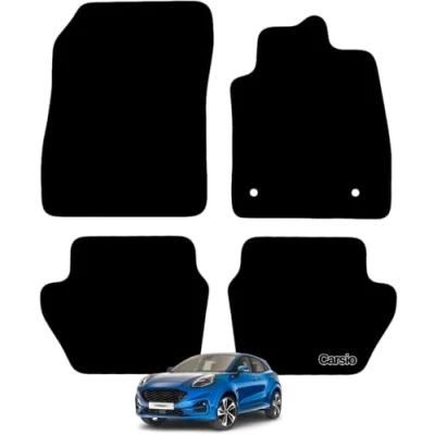TAILORED CUSTOM FIT: Carsio Carpet Car Mats For [Ford Puma Mild Hybrid 2019+ Onwards]: Expertly crafted to precisely match the exact dimensions and contours of your vehicle. These mats are designed for an exact fit, ensuring complete coverage and protection. SLEEK & DURABLE DESIGN: Our car floor mats are crafted from a new 550gsm automotive-grade carpet, boosting comfort on long drives and extending your vehicle's interior lifespan. With a multi-layered construction, modern carpet texture, and reinforced backing, they offer durability and a premium look. Easy to maintain?just remove, shake, and vacuum?they're perfect for those seeking stylish, high-quality mats that blend luxury with practical protection. CLIPS INCLUDED - SECURE FITMENT: Equipped with antislip backing and OEM-style clips, our floor mats ensure a secure fit in your car?s footwell. The textured backing acts as a built-in retention system for a non-slip surface, while the easy-to-install clips provide extra security to prevent movement. Ideal for a stable, safe driving experience, these mats combine durability with advanced technology for a reliable and stylish solution. BLACK TRIM: Each floor mat is meticulously edged with Black Cloth Edge/Binding, creating a sleek and professional finish that enhances the look of your vehicle. This along with the high-quality Black Carpet clean aesthetic that complements your car?s interior beautifully. MADE IN THE UK: Expertly produced by Carsio in the UK, our Mats are hand-finished and rigorously inspected by our skilled team to ensure top quality and lasting protection. Designed to meet OE-level standards, they provide exceptional value at a fraction of the dealer price. With state-of-the-art manufacturing technology, Carsio minimizes waste and reduces environmental impact, offering you superior quality and great value.