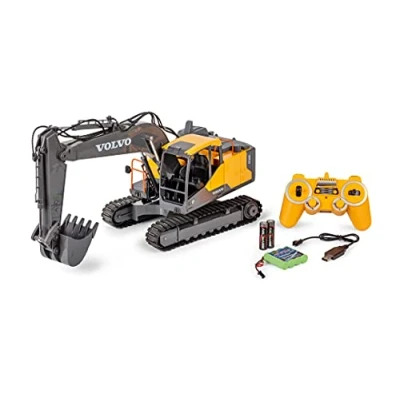 Remote controlled crawler excavator - full function for young builders. The RC Volvo caterpillar excavator in scale 1:16 includes many details and functions with the latest technology. High playing value - The powerful Volvo crawler excavator is equipped with engine and driving sound, as well as many other functions. The shovel can lift up to 200 grams of weight. 360 function - The construction of the remote controlled crawler excavator can be rotated 360 degrees via the transmitter. This allows flexible use on any construction site. Powerful chain operation – the movement of the construction vehicle for children is carried out by a powerful chain drive. This ensures varied fun indoors and outdoors for young builders. International products have separate terms, are sold from abroad and may differ from local products, including fit, age ratings, and language of product, labeling or instructions., Manufacturer: Carson
