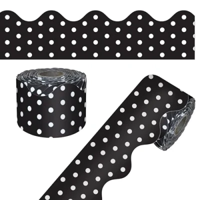 Carson Dellosa 65 Feet Black and White Polka Dots Bulletin Board Borders, Scalloped Border Trim, Rolled Classroom Borders for Board, Cork Décor