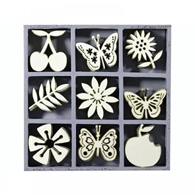 cArt Us Box with Wooden Ornaments Fruits Butterfly Flower 10.5x10.5cm, Wood, Natural