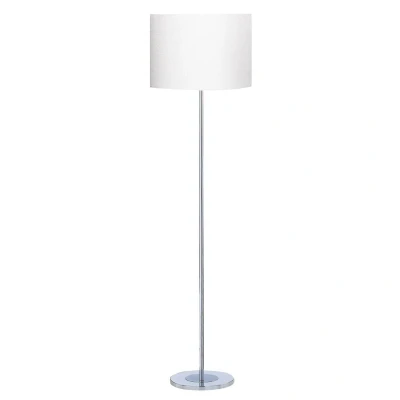 Carter 1 Light Round Floor Lamp Chrome with White Fabric Shade, E27