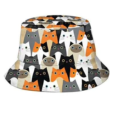 Cartoon Cat Bucket Hats Funny Animal Hat Sun Cap Packable Outdoor Travel Beach Fisherman for Women Men
