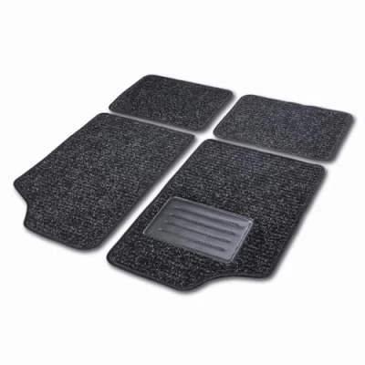 AmazonUniversal floor mat set of 4 Weather-resistant with non-slip base Edging made of black high-gloss yarn and double ribs needle felt With PVC heel protector Colour: black