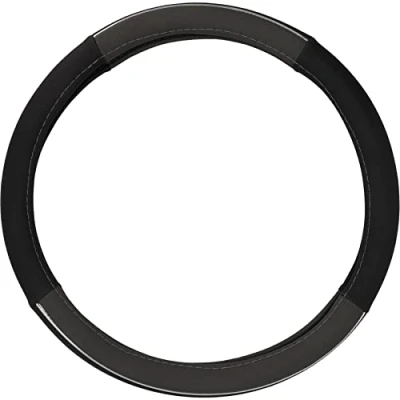 Cartrend 60294 Premium Steering wheel cover, black/grey, with chrome frame