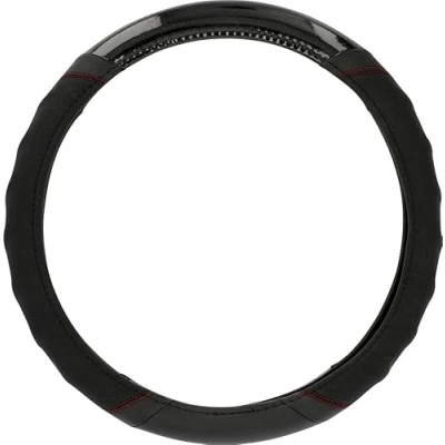 Cartrend 60295 Premium Steering wheel cover with finger grip, red seam, black/carbon