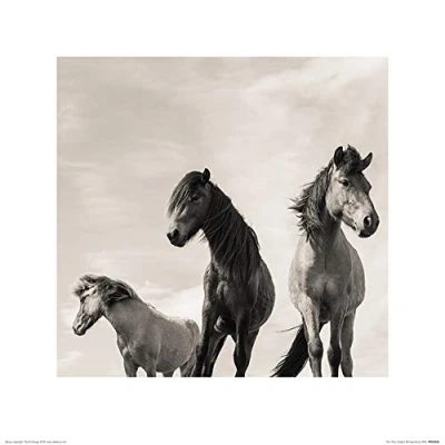 Carys Jones Three White Horses Art Prints, Multicolour, 40 x 40cm