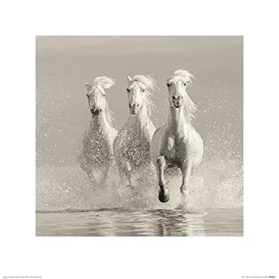 Carys Jones Three White Horses Art Prints, Multicolour, 40 x 40cm