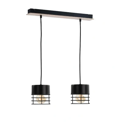 Casa Bar Pendant Ceiling Light Black, Wood, 50cm, 2x E27