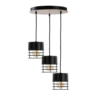Casa Cluster Pendant Ceiling Light Black, Wood, 32cm, 3x E27
