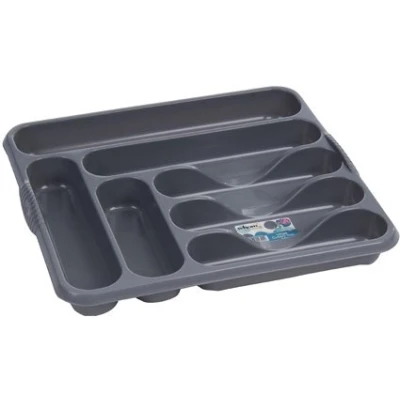 Casa Large Cutlery Tray Rack 7 Compartment Plastic Draw Storage Stand Holder Caddy Organiser for Kitchen Drawers (Silver/Grey)